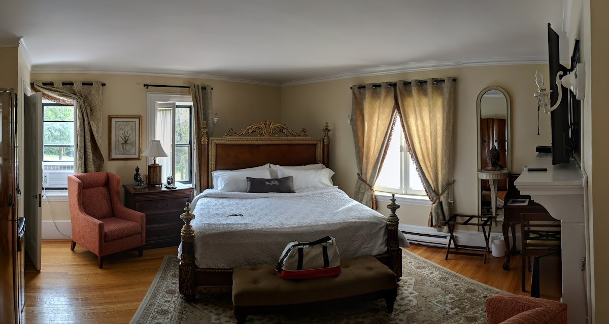 The Grey Gable Inn is an historic inn just blocks away from Pembroke's downtown. Its luxury rooms were elegantly designed with modern amenities, providing a comfortable and indulgent stay. The room I stayed in —Kensington— had a coffee machine and a refrigerator that housed a small freezer. The decoration was very tasteful, while it retains the charm of an old house, it is updated and provides a comfortable stay. There is a diner housed in the Inn. Meals are available for purchase Overall, the luxurious rooms and the picturesque garden are delightful. I highly recommend this hotel to anyone looking for a unique and memorable accommodation experience."